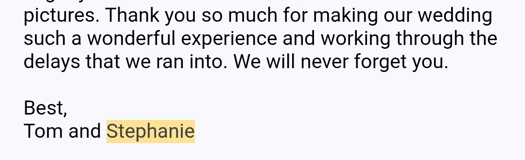 April & Steven review from WeddingWire