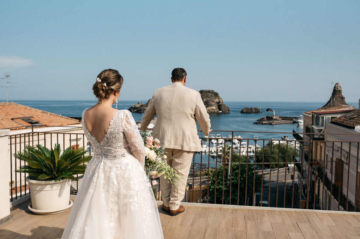Venues for a symbolic ceremony for two can be Mediterranean gardens and gazebos immersed in lush greenery on the territory of ancient villas on the slopes of Etna, private beaches with sea views in Taormina, Syracuse and Catania, panoramic terraces and grottoes of boutique hotels in Taormina, Villa Corleone where scenes from The Godfather were filmed, the presidential suite overlooking the beach in a luxury hotel in Taormina (accommodation is optional), wild beaches. Also, I have a private database of holiday rentals with panoramic terraces, gardens and access to the private beach, all with scenic views in different parts of Sicily.