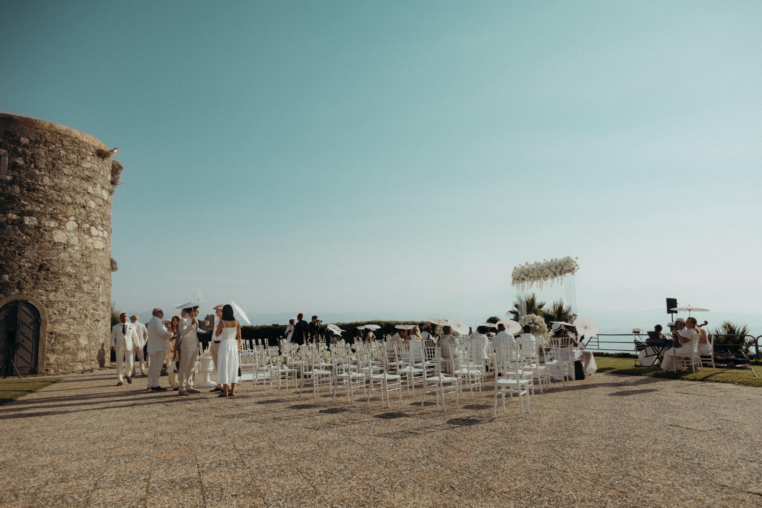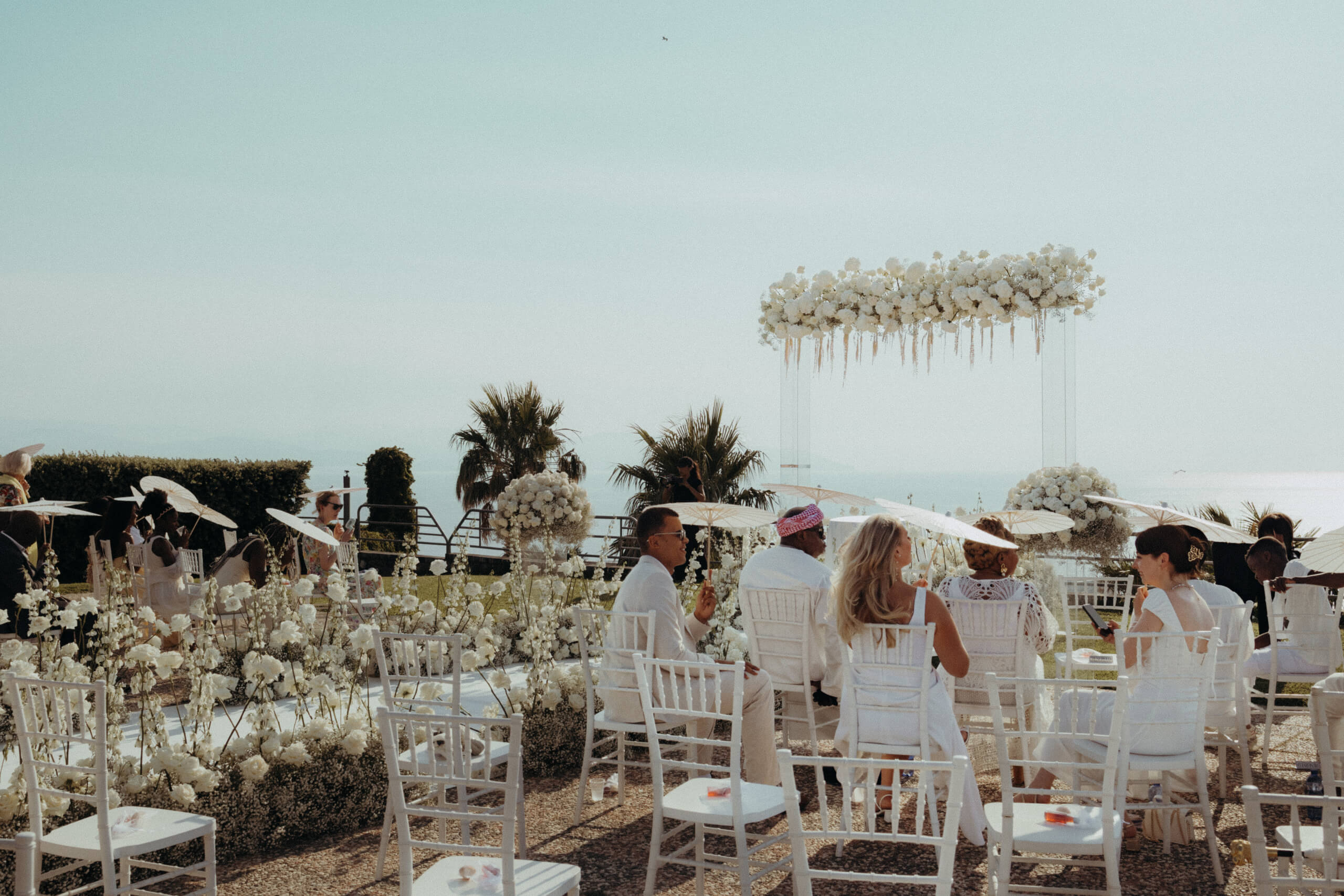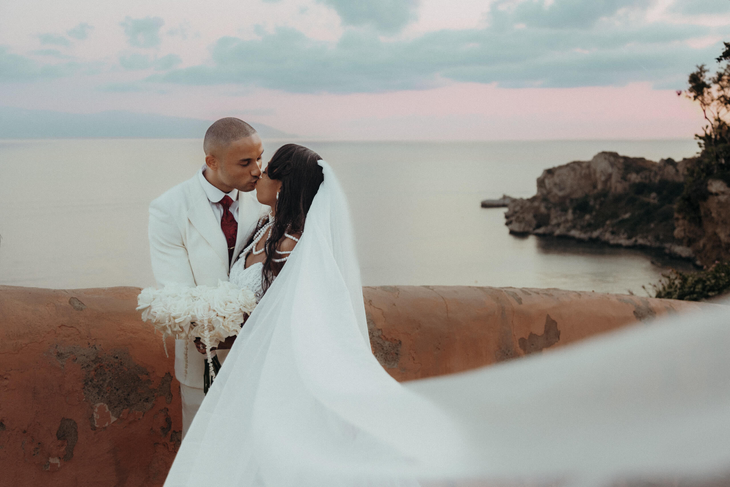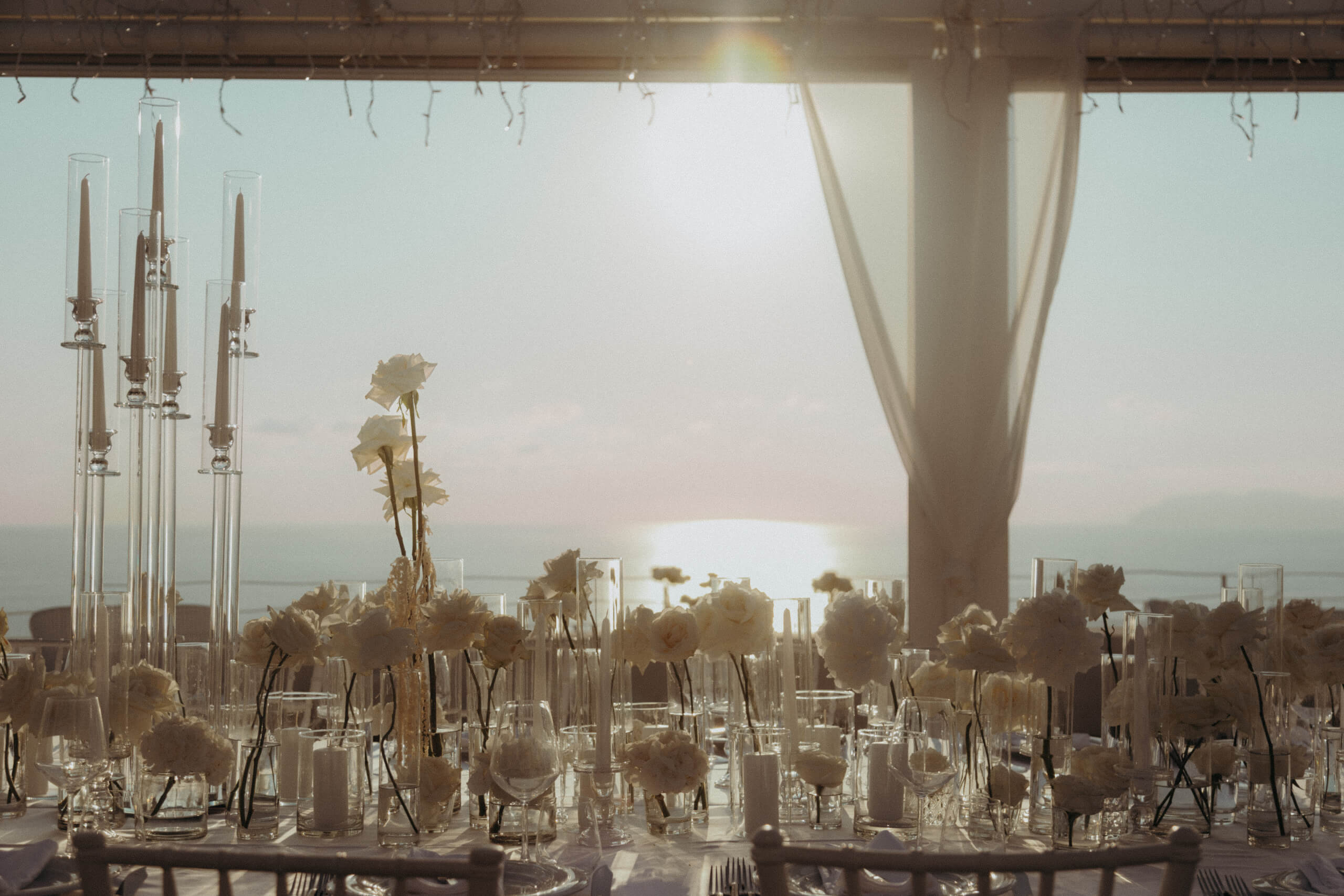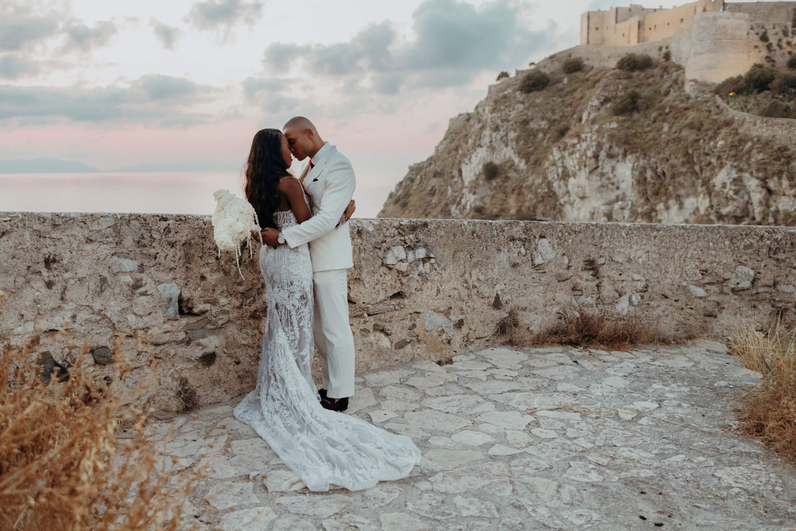 Planning this wedding was a truly challenging and remarkable experience. Evaristelle and Wouter, a couple from Benelux working in Panama, decided to gather their families and friends from all over the world to celebrate their Big Day in Sicily. Their main goal was to find an outstanding venue with breathtaking sea views and a modern, linear design featuring white and light colors. Equally important was the planning and coordination of a sophisticated, high-end wedding design, a priority highlighted by the bride from the very beginning.