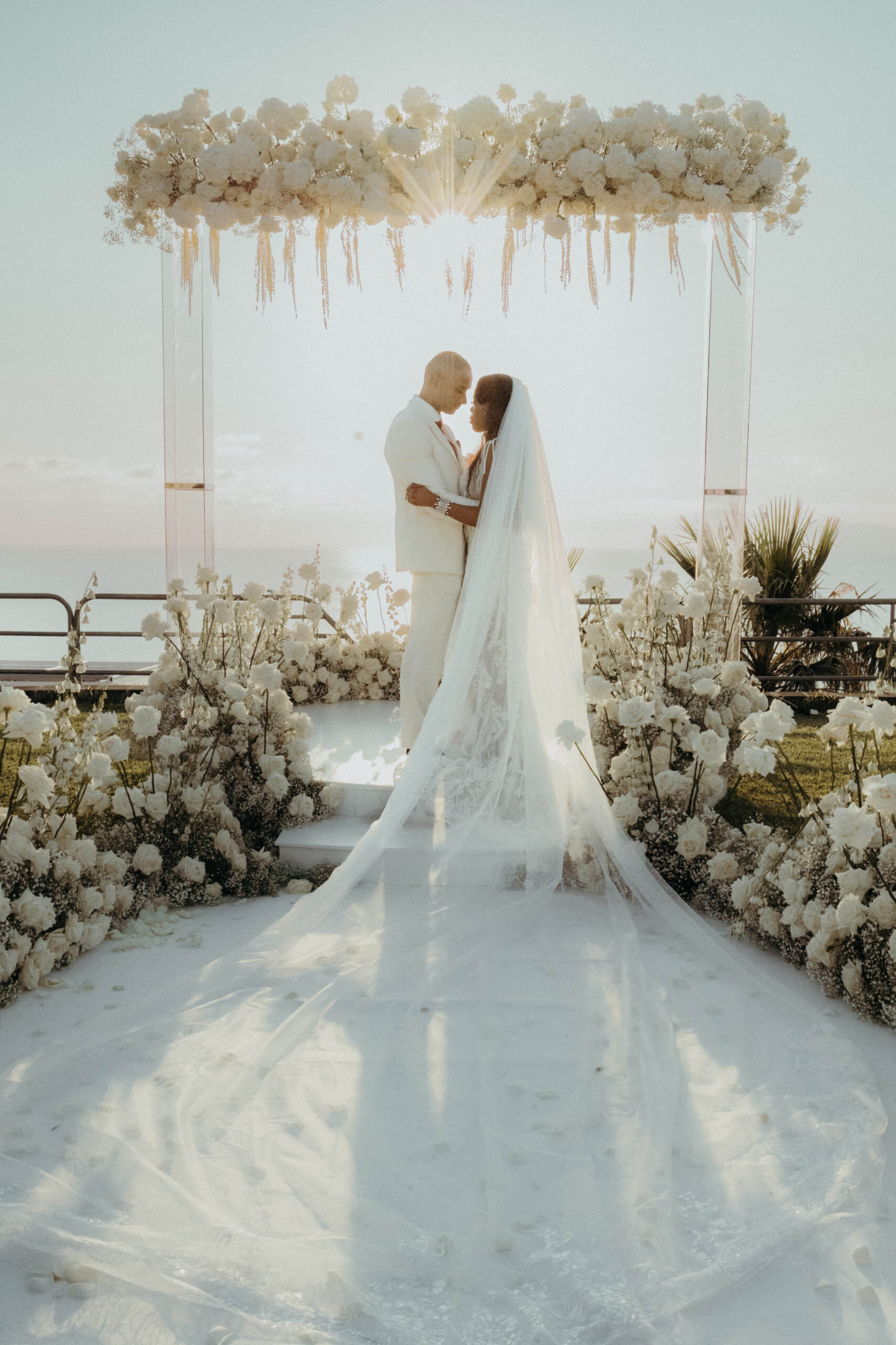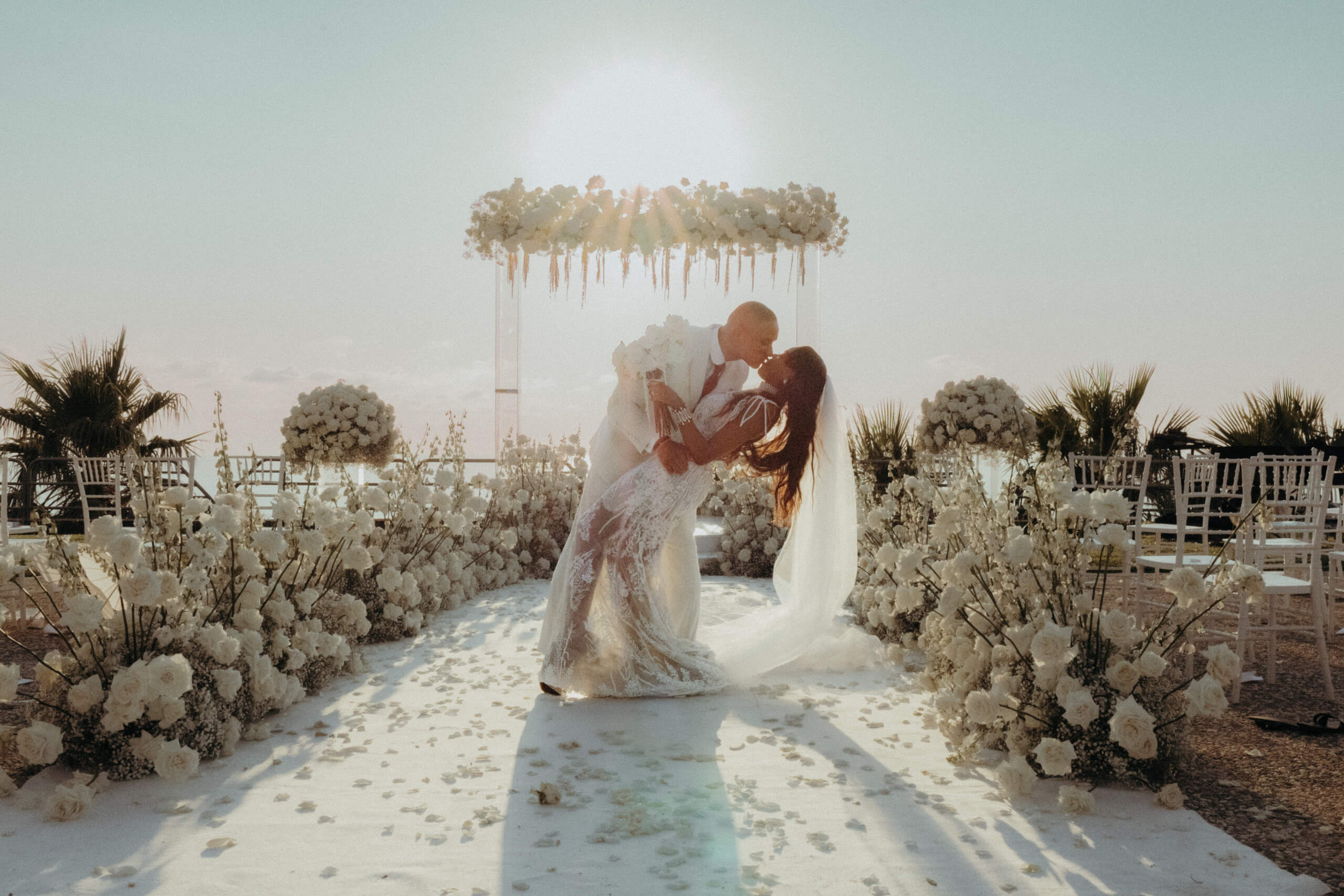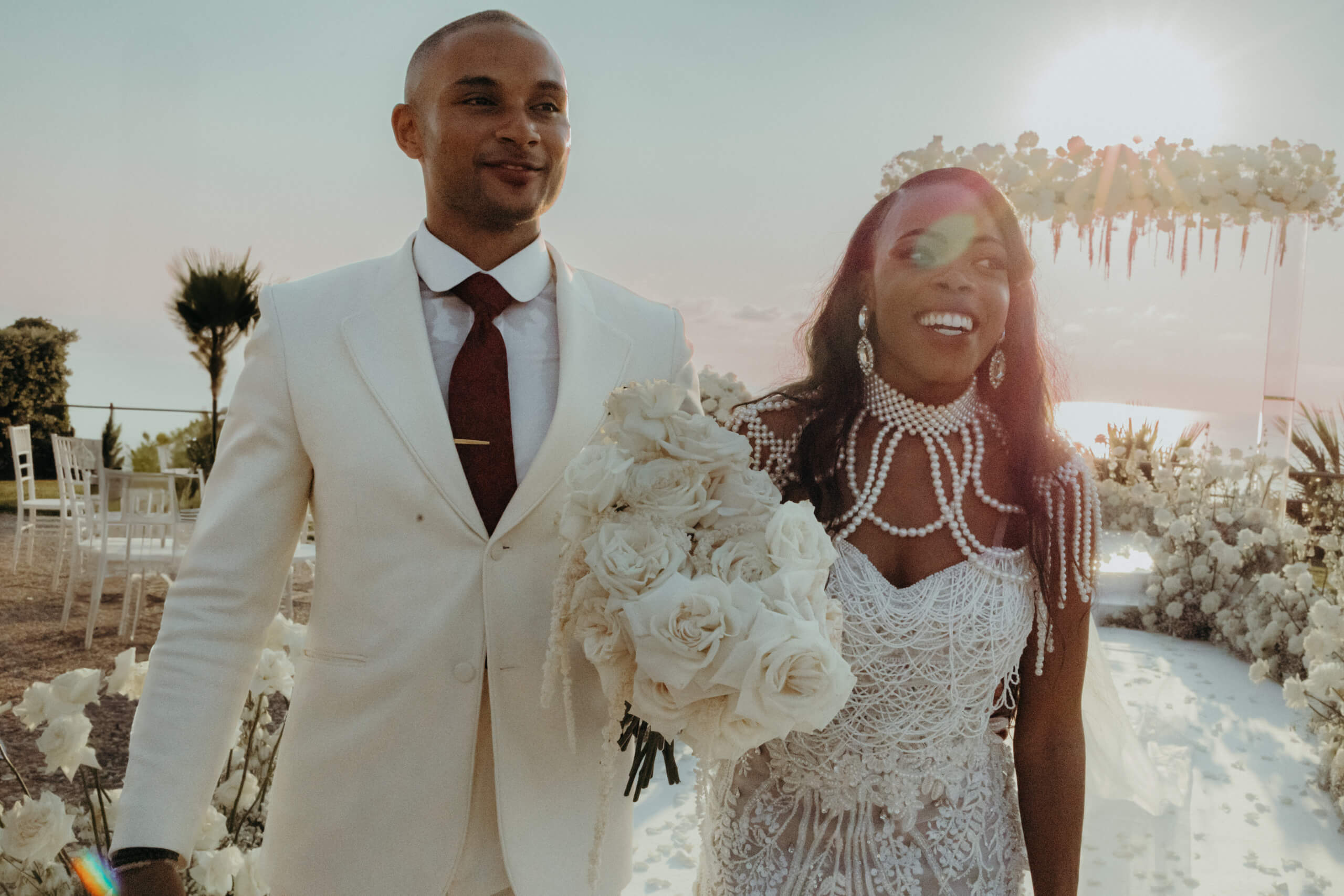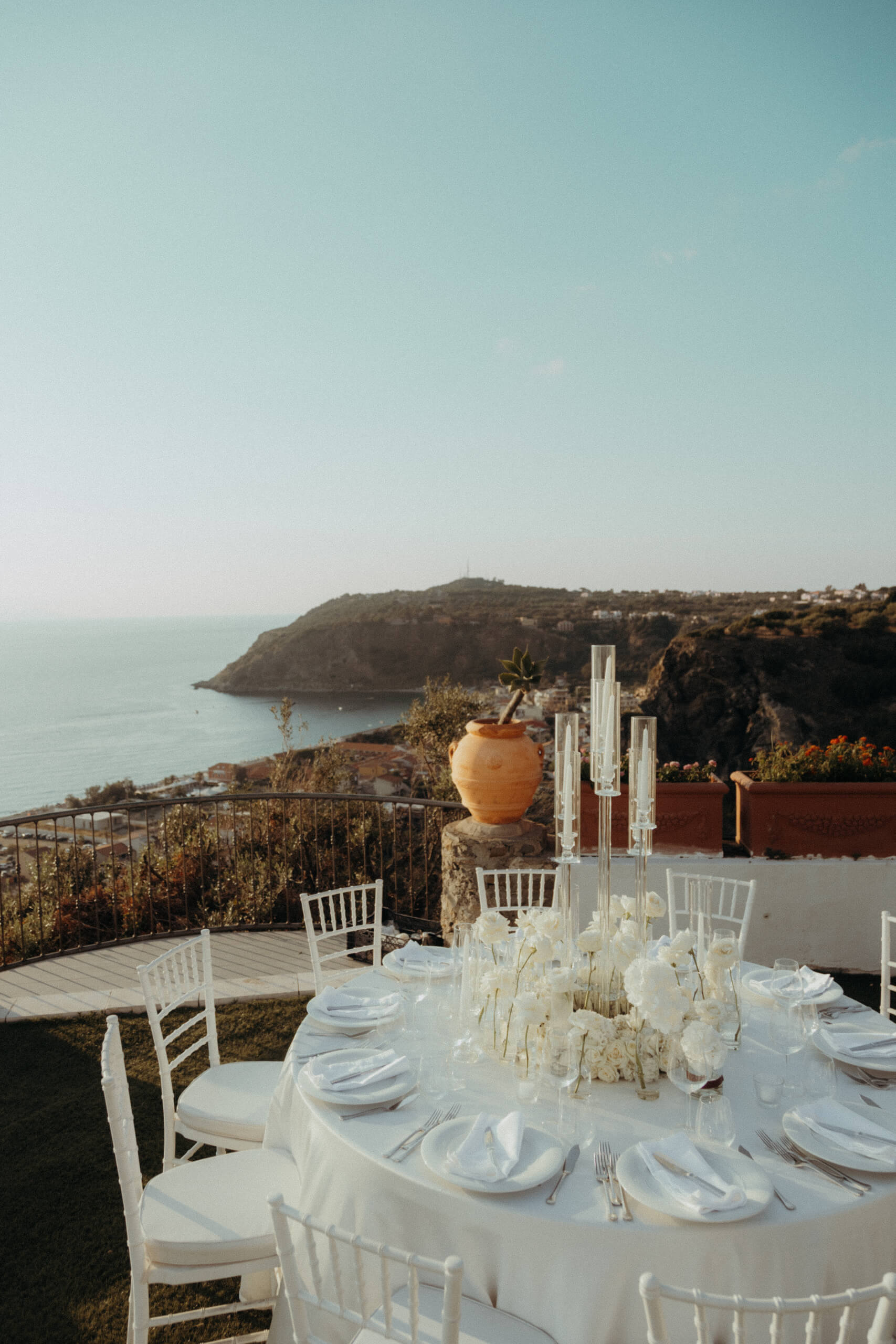 Planning this wedding was a truly challenging and remarkable experience. Evaristelle and Wouter, a couple from Benelux working in Panama, decided to gather their families and friends from all over the world to celebrate their Big Day in Sicily. Their main goal was to find an outstanding venue with breathtaking sea views and a modern, linear design featuring white and light colors. Equally important was the planning and coordination of a sophisticated, high-end wedding design, a priority highlighted by the bride from the very beginning.