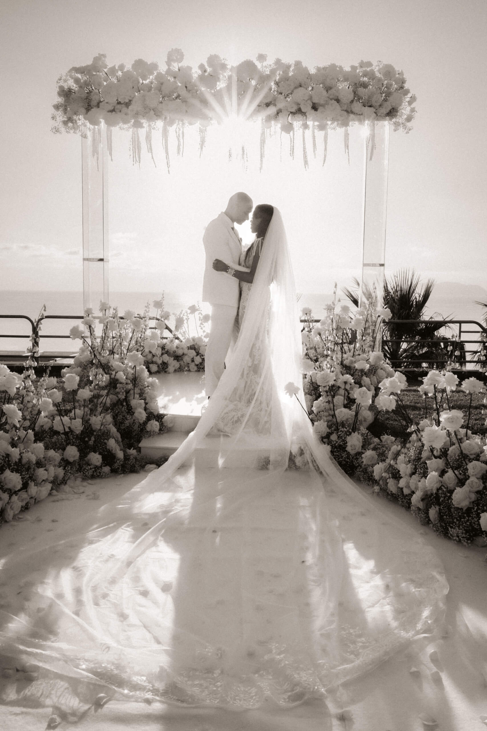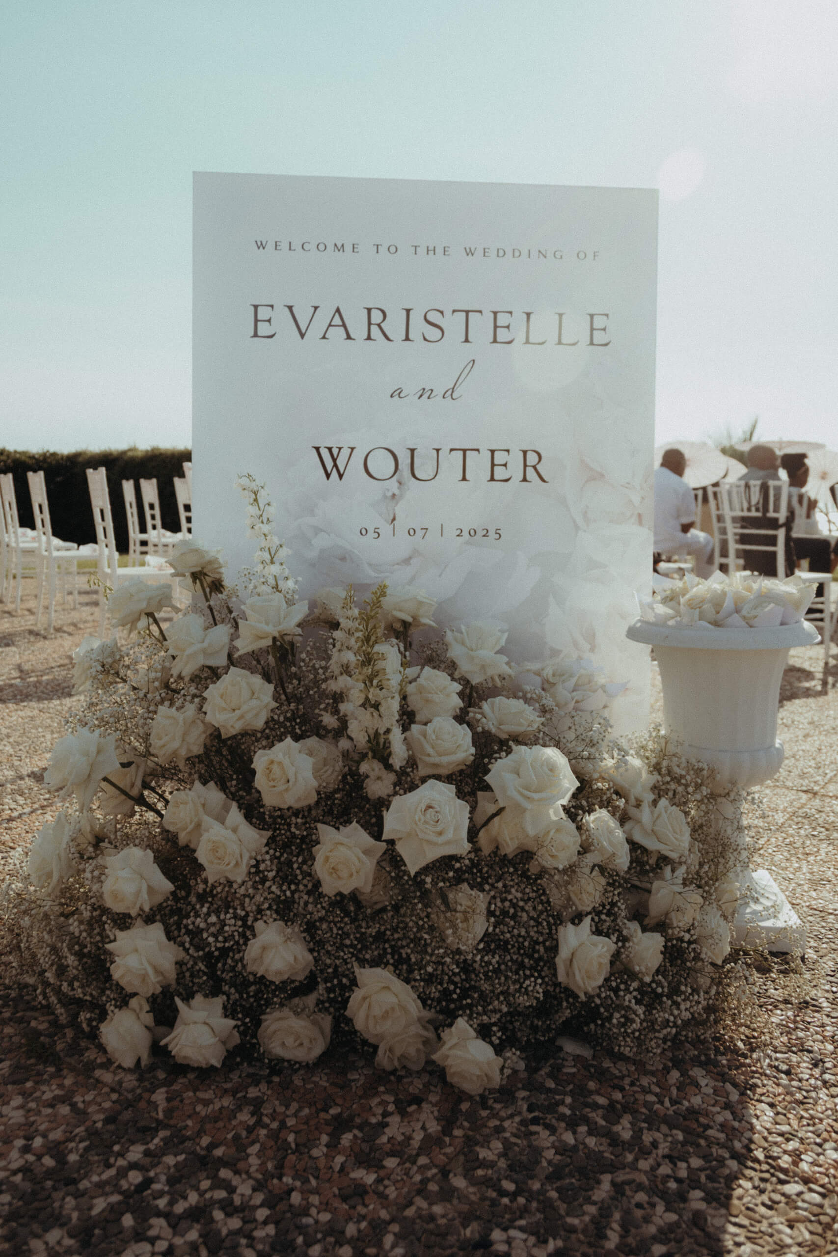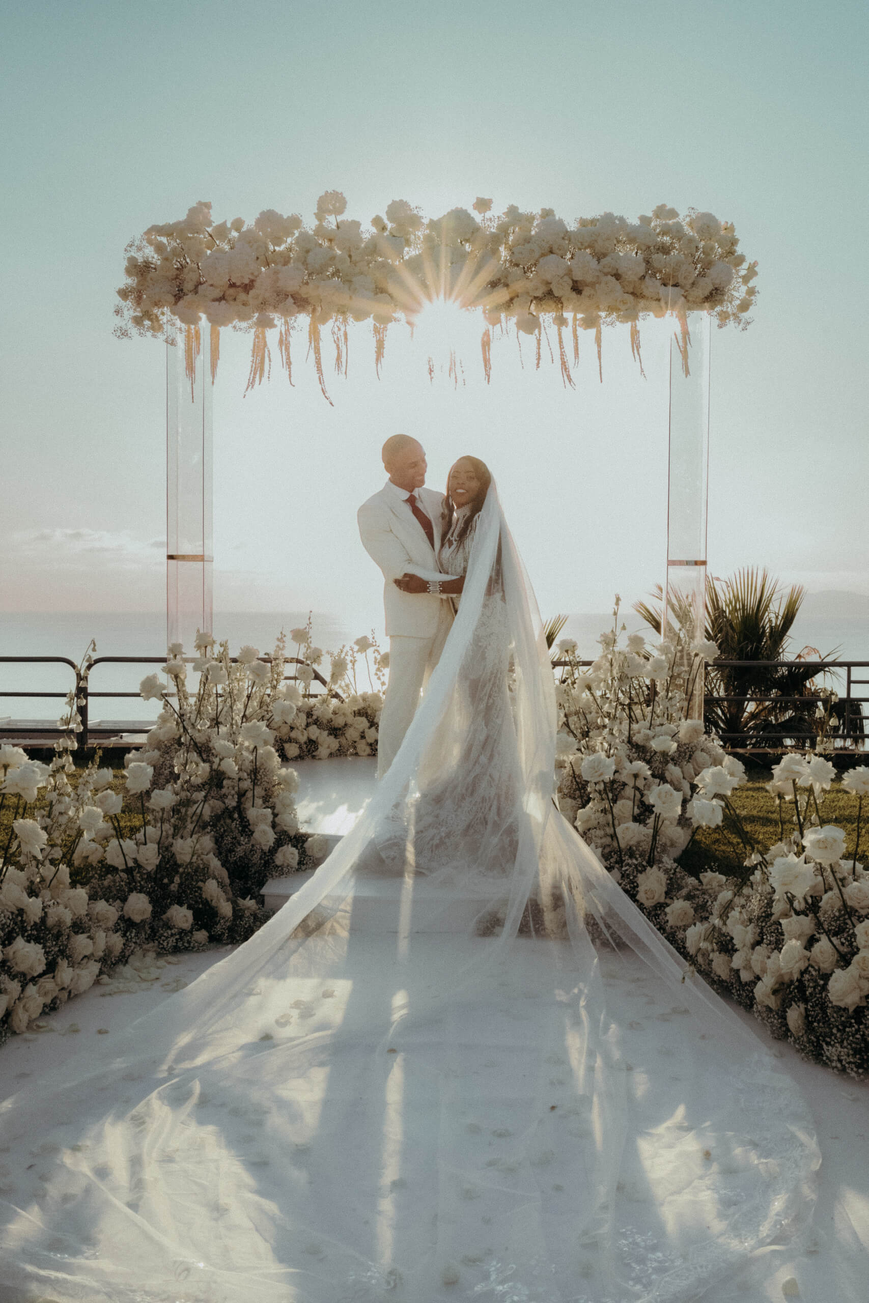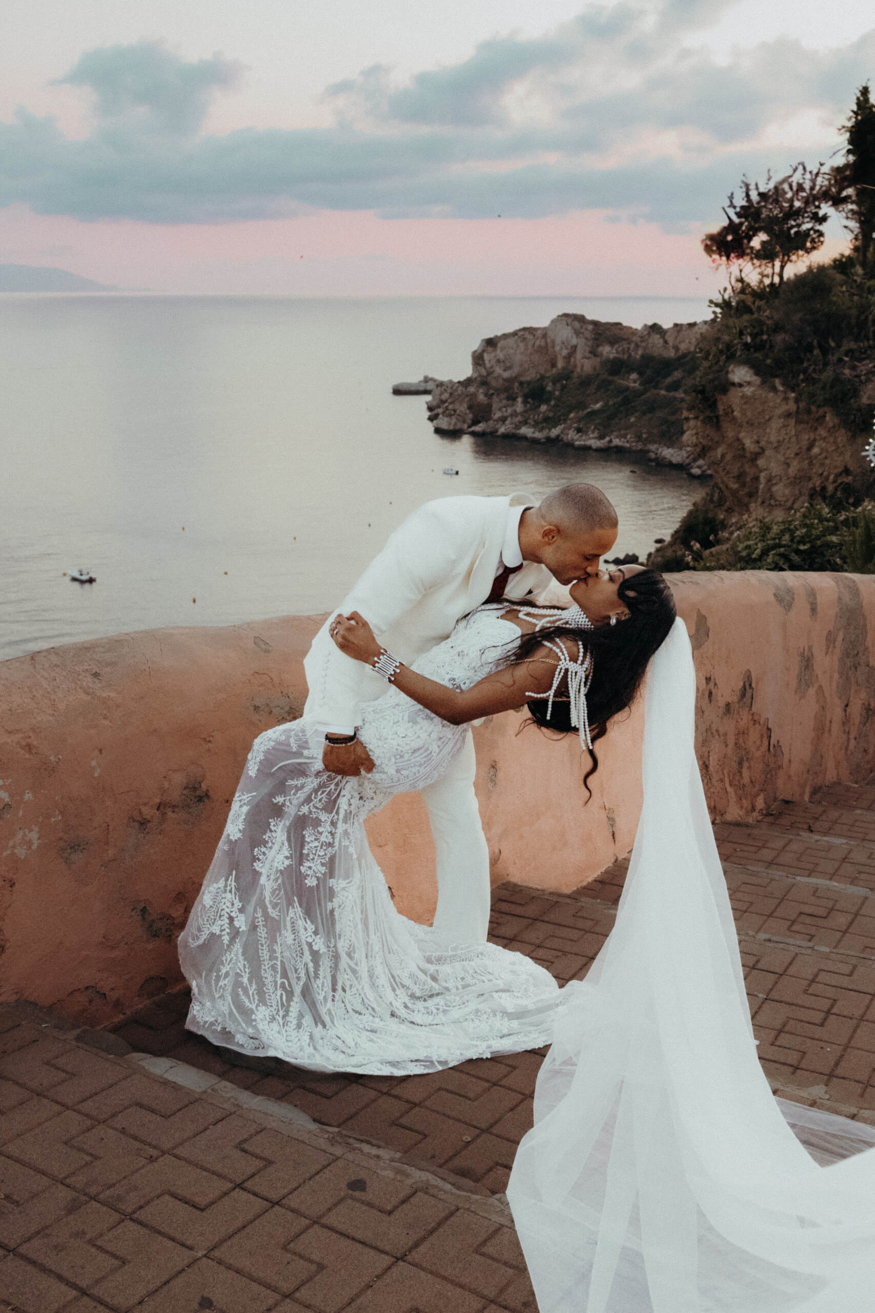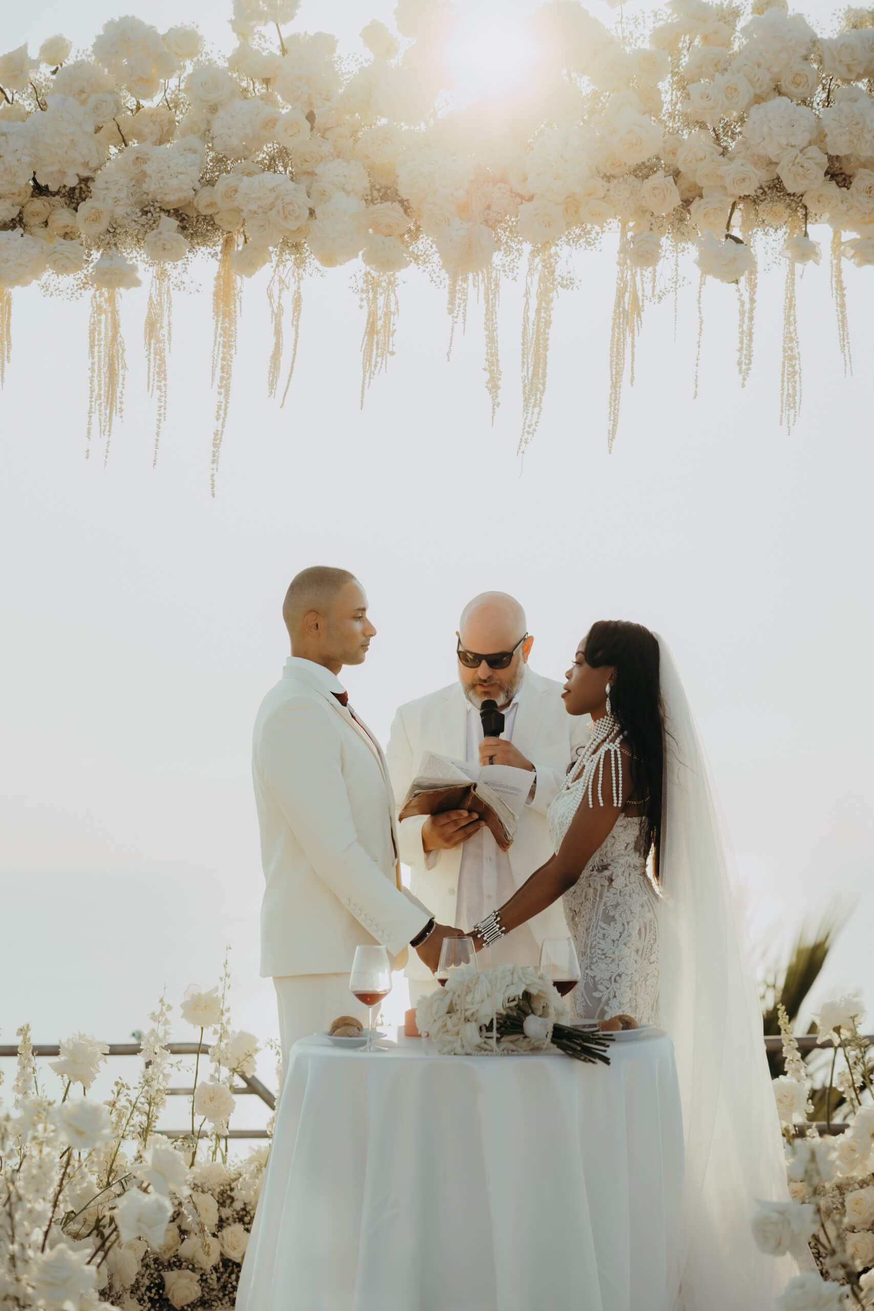 Planning this wedding was a truly challenging and remarkable experience. Evaristelle and Wouter, a couple from Benelux working in Panama, decided to gather their families and friends from all over the world to celebrate their Big Day in Sicily. Their main goal was to find an outstanding venue with breathtaking sea views and a modern, linear design featuring white and light colors. Equally important was the planning and coordination of a sophisticated, high-end wedding design, a priority highlighted by the bride from the very beginning.