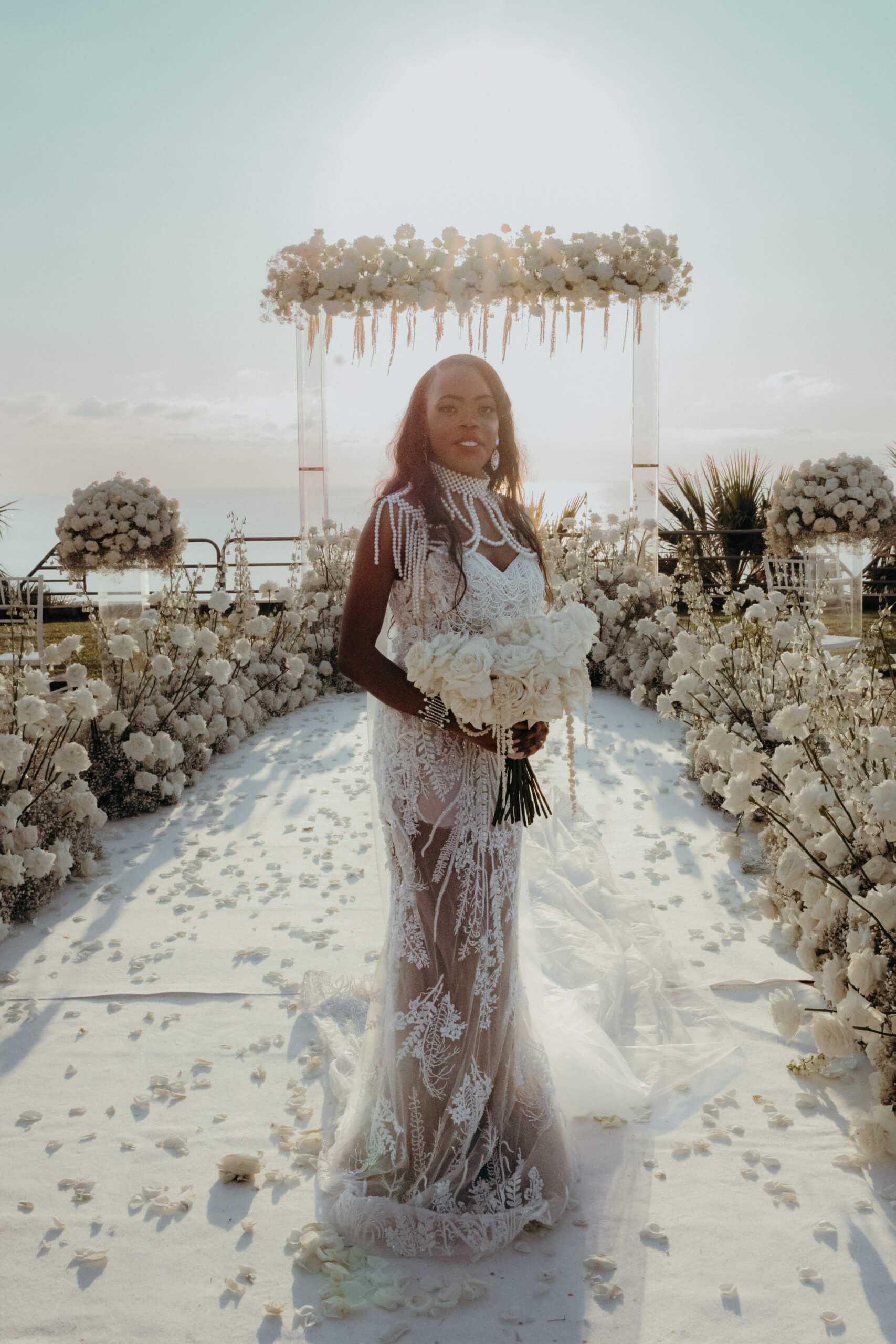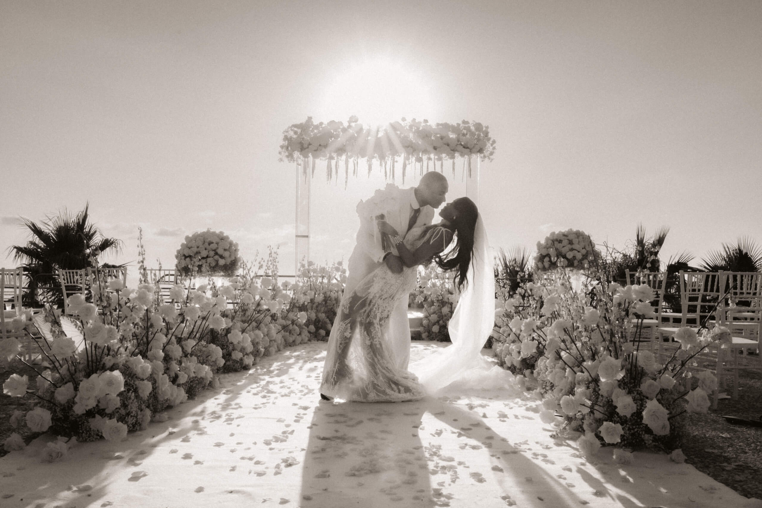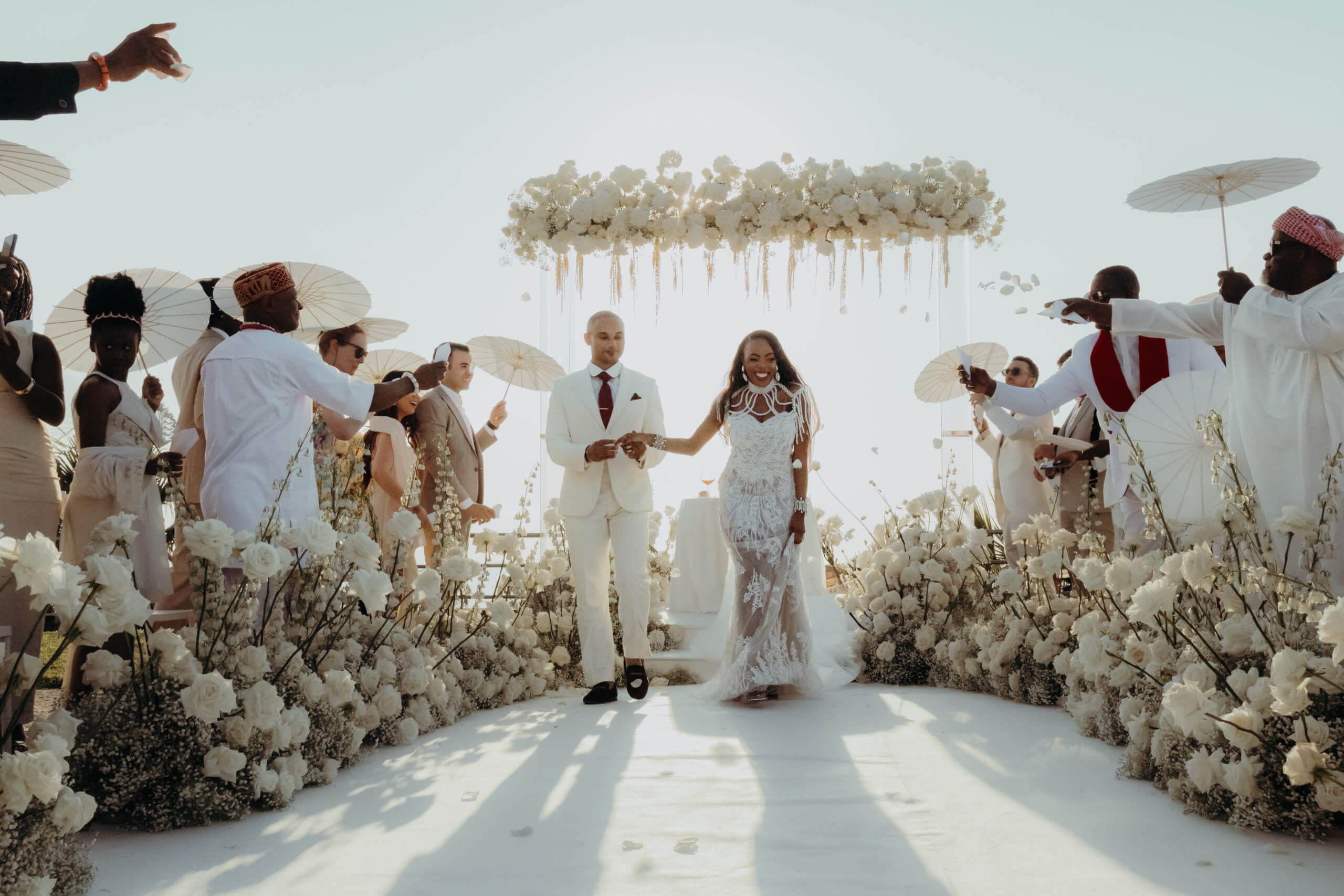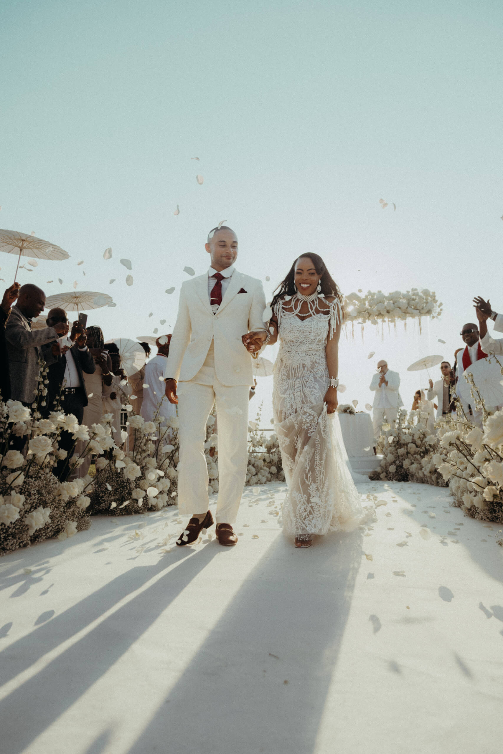 Planning this wedding was a truly challenging and remarkable experience. Evaristelle and Wouter, a couple from Benelux working in Panama, decided to gather their families and friends from all over the world to celebrate their Big Day in Sicily. Their main goal was to find an outstanding venue with breathtaking sea views and a modern, linear design featuring white and light colors. Equally important was the planning and coordination of a sophisticated, high-end wedding design, a priority highlighted by the bride from the very beginning.
