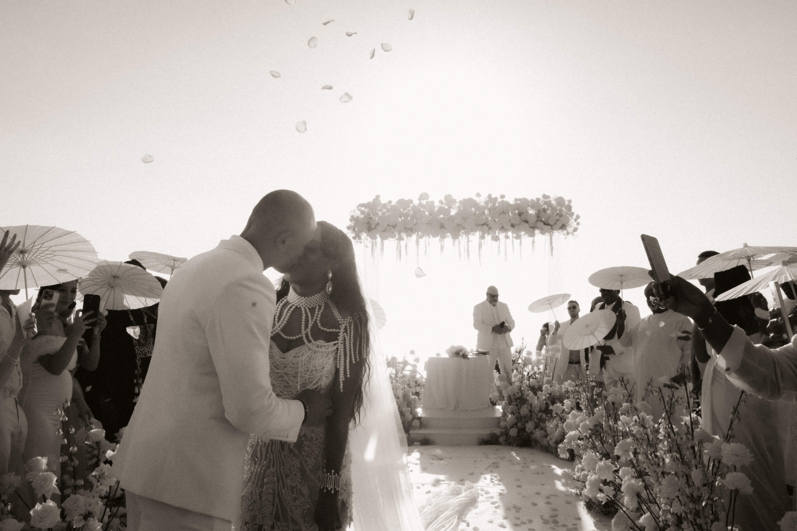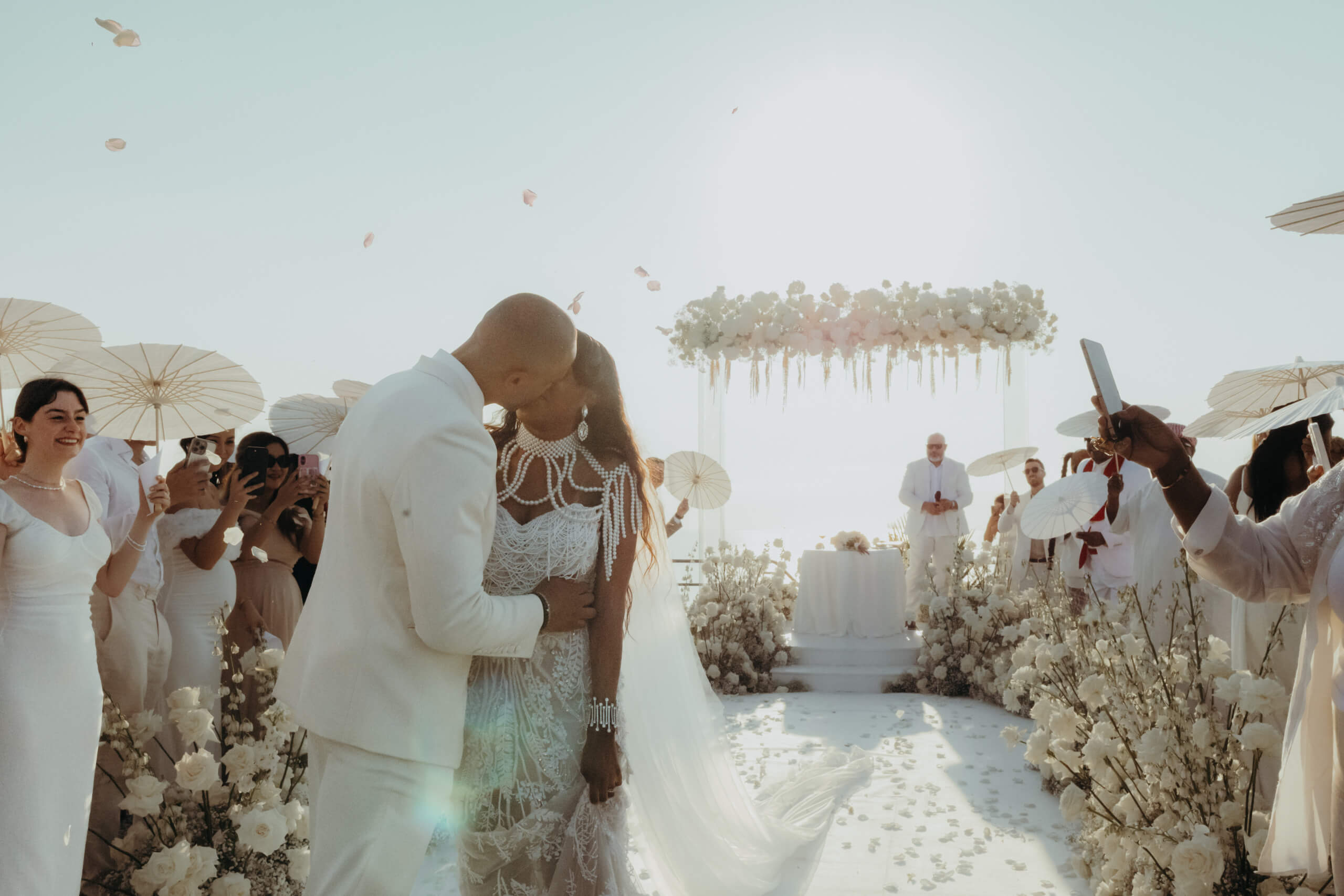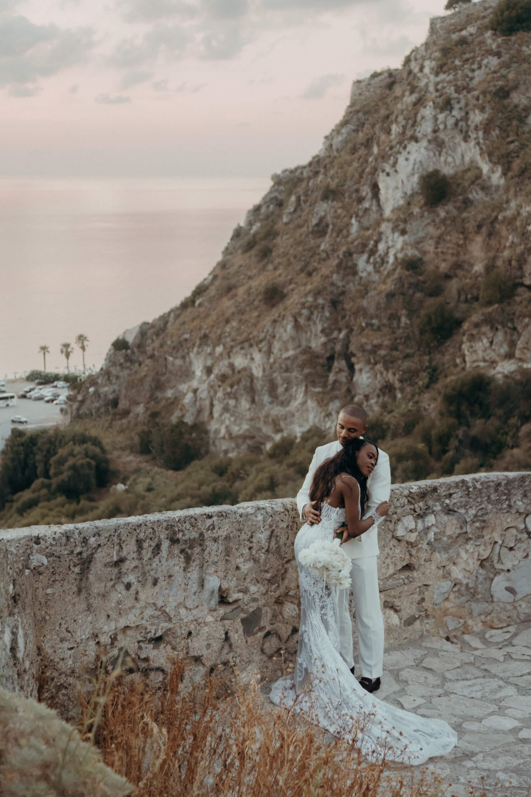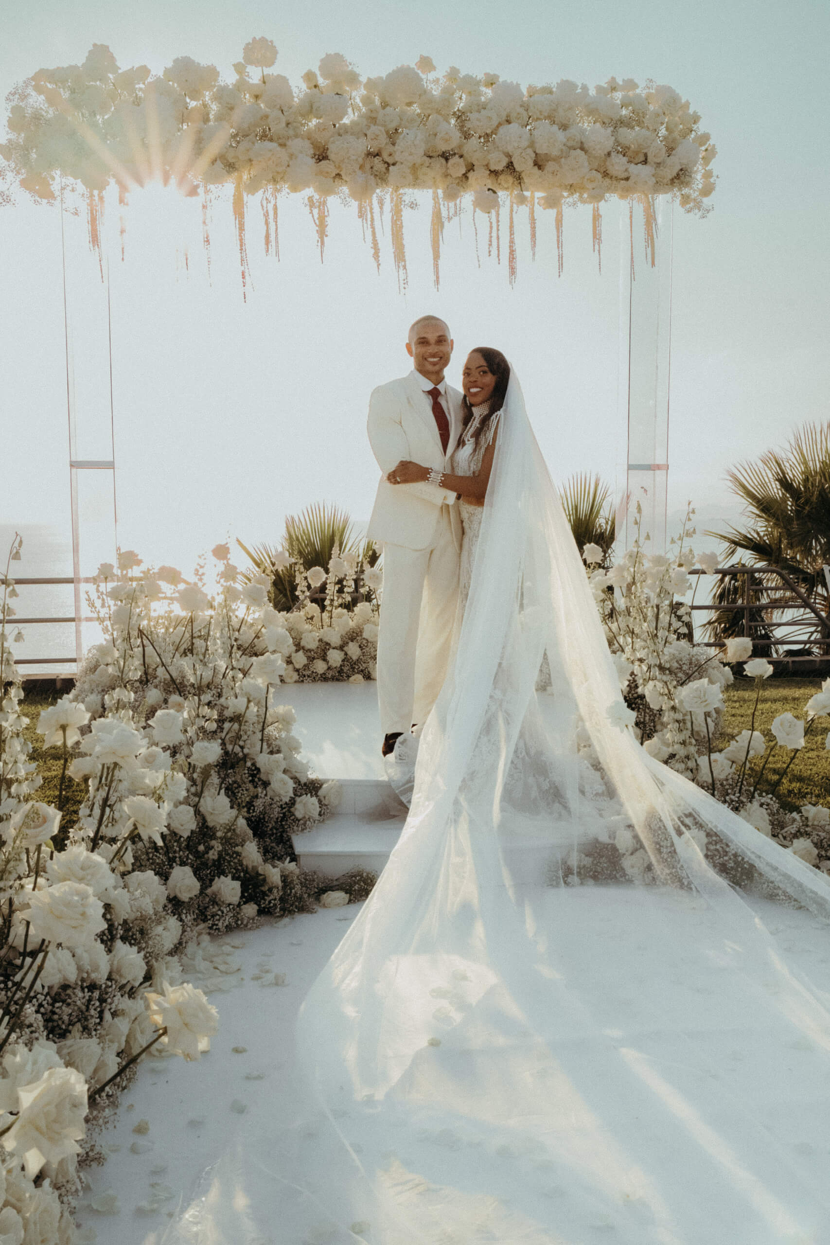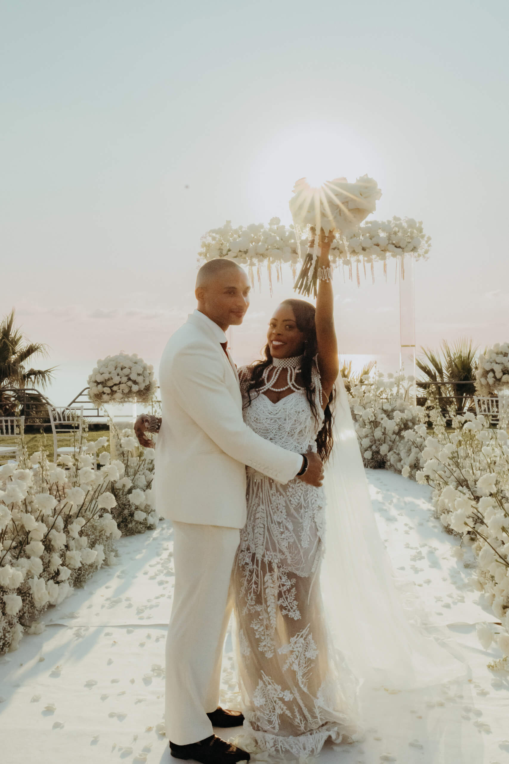 Planning this wedding was a truly challenging and remarkable experience. Evaristelle and Wouter, a couple from Benelux working in Panama, decided to gather their families and friends from all over the world to celebrate their Big Day in Sicily. Their main goal was to find an outstanding venue with breathtaking sea views and a modern, linear design featuring white and light colors. Equally important was the planning and coordination of a sophisticated, high-end wedding design, a priority highlighted by the bride from the very beginning.